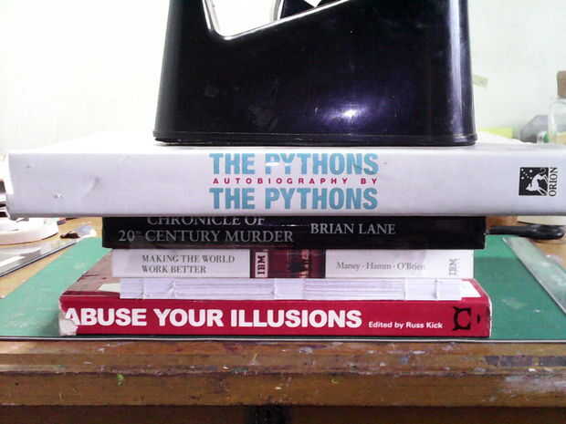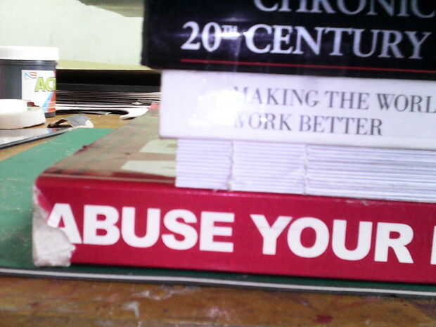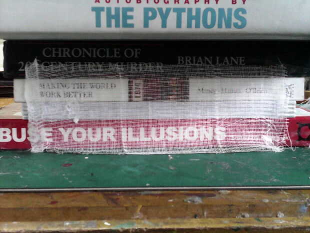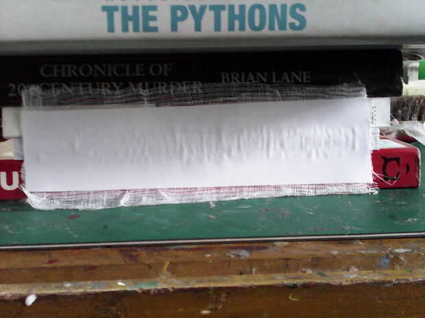 corte un pedazo de papel del tamaño de la columna vertebral (con permiso) y palillo en la columna vertebral. Espere a que esta configuración toda secar por medio día antes de tocar nada!
