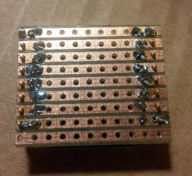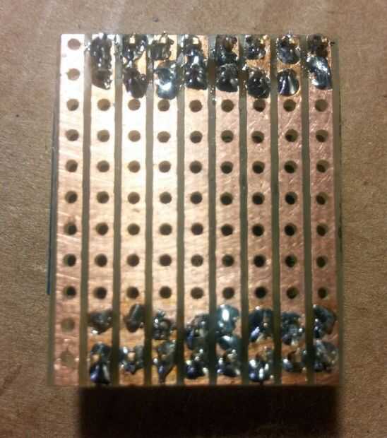 Una vez terminado Inspeccione su trabajo y asegúrese de su soldadura no ha saltado los canales entre las tiras de cobre.