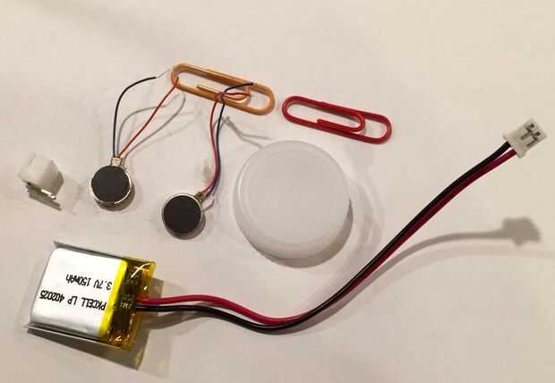 Estas baterías de polímero de iones de litio son pequeñas, recargable, a la derecha tamaño para caber en una tapa de la botella y puede proporcionar suficiente tensión y línea recta actual de la batería para alimentar unos motores de vibración. Aquí está un enlace de Amazon para dos baterías, pero sólo tenemos uno: Baterías LiPo de Amazon y otro link de Adafruit: batería LiPo de Adafruit