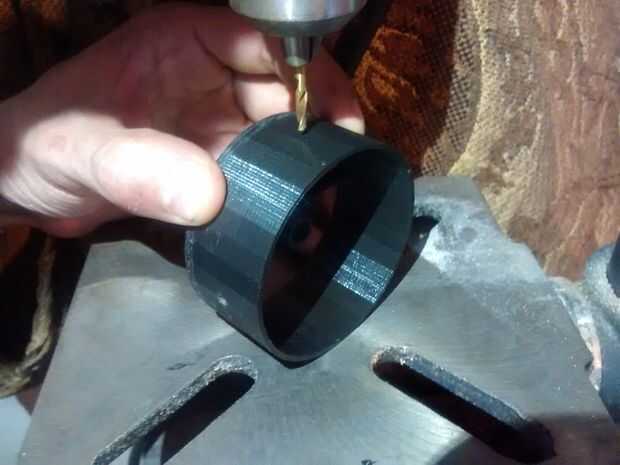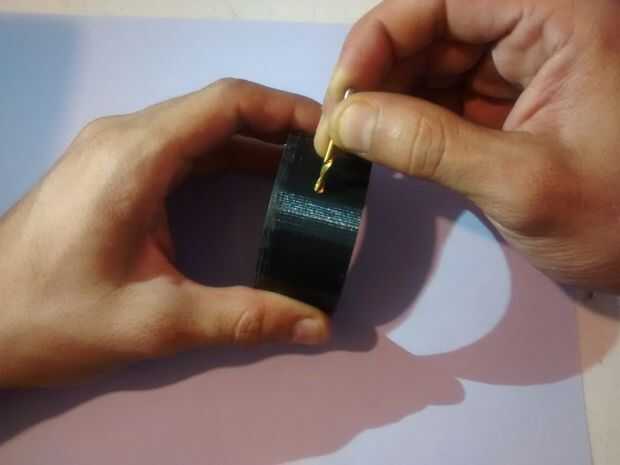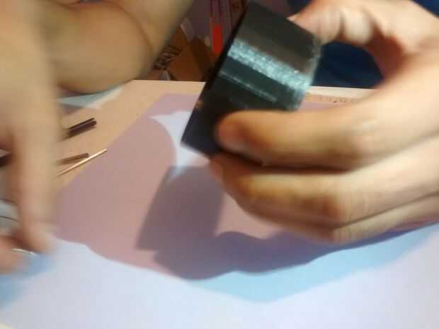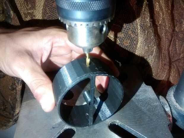 Una vez que tengas la mitad de la altura, hacer un agujero con el taladro de 5mm, observe que el agujero se ha hecho en el mismo lado de la pequeña base del motor (la línea que cruza la base).