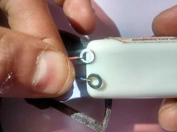 Luego poner el motor en marcha, los cables deben ir cara abajo. Enreda los cables con las arandelas, cada alambre con una arandela, es porque quería evitar la soldadura, por lo que las arandelas conducirá la corriente al motor.