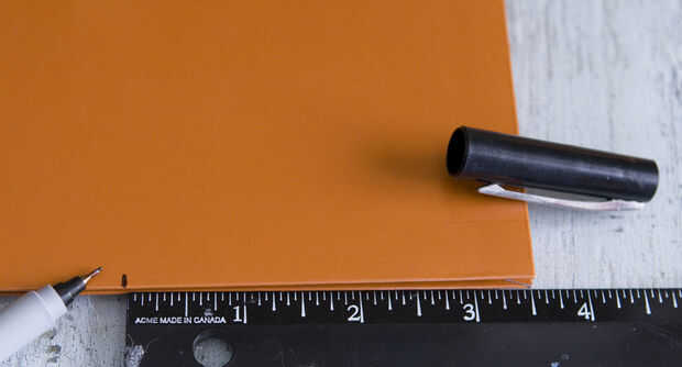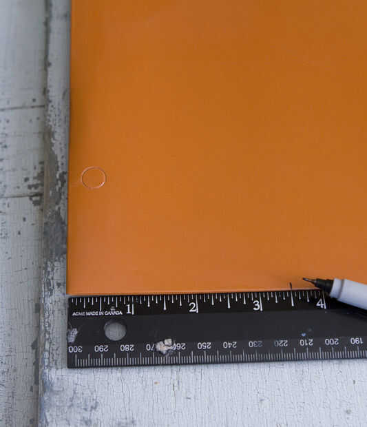 - Trace una línea paralela al borde de la carpeta va a través de sus marcas de 3,5 pulgadas.