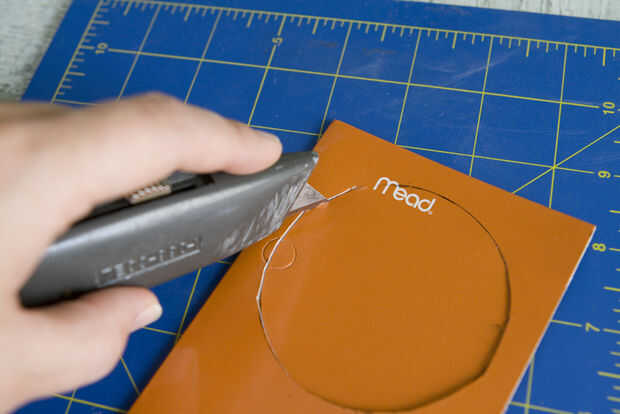 - Corte el agujero, pasando por todas las capas de la carpeta.