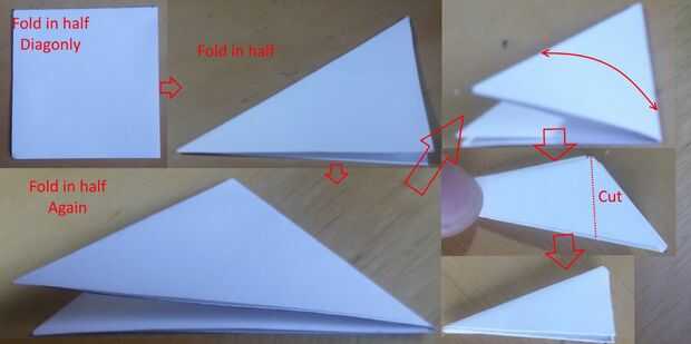 Comenzar formando un cuadrado de papel de aproximadamente 7cm o de 2,75 pulgadas y doblarlo por la mitad diagonalmente