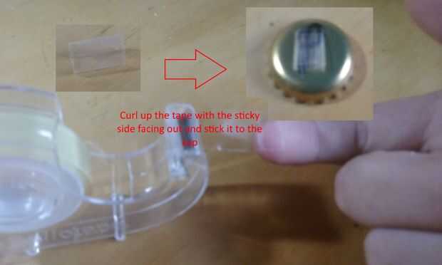 tomar su blue-tack o masilla y colocarla dentro de la tapa de la botella