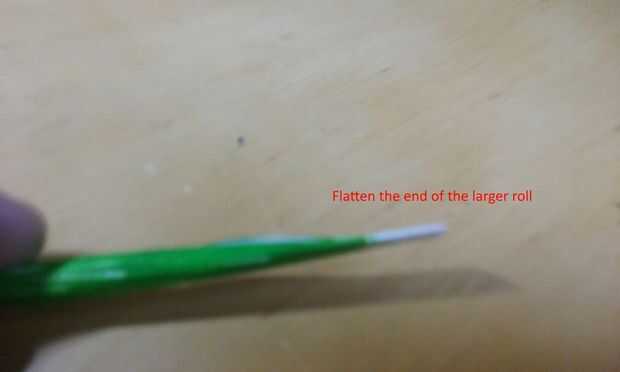 Tomar el rollo más grande hueco, colorearlo y aplanar el extremo