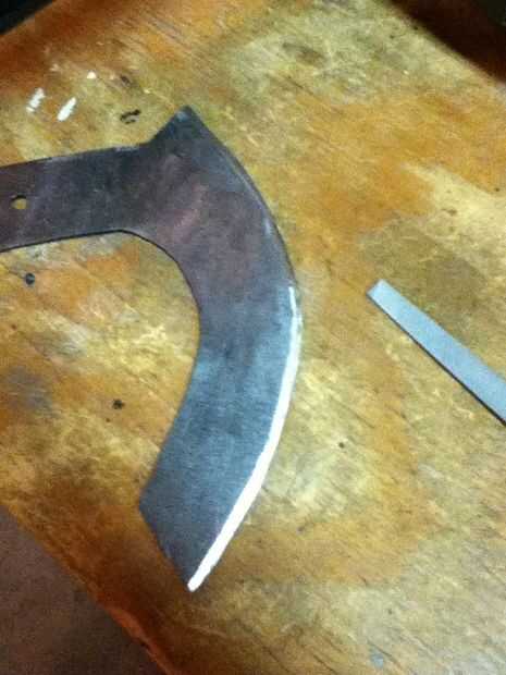 Después de que terminé de trabajar en el mango, me di cuenta de la hoja parecía demasiado nuevo, quería que se vea como si fuera viejo y usado. Así que hice lo mismo hice con el mango, la hoja pintado de negro y luego frota la pintura fuera con un trapo. Estaba muy contento con cómo hizo la hoja ver más viejo y mucho más como lo hizo en el juego. Si quieres la hoja afilada, ahora es el momento de afilarlo. Sólo tiene que utilizar una amoladora afilar ambos lados de la hoja y luego limpiar con una Lima. Ahora es el momento para terminar poniendo juntos, mezclar un poco de epoxy, ponerlo en la ranura y deslice la lámina en. El perno a través del palillo y esperar a que el epoxy se seque.