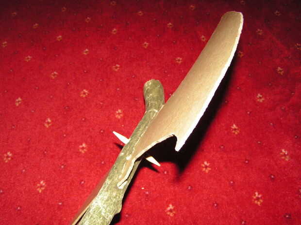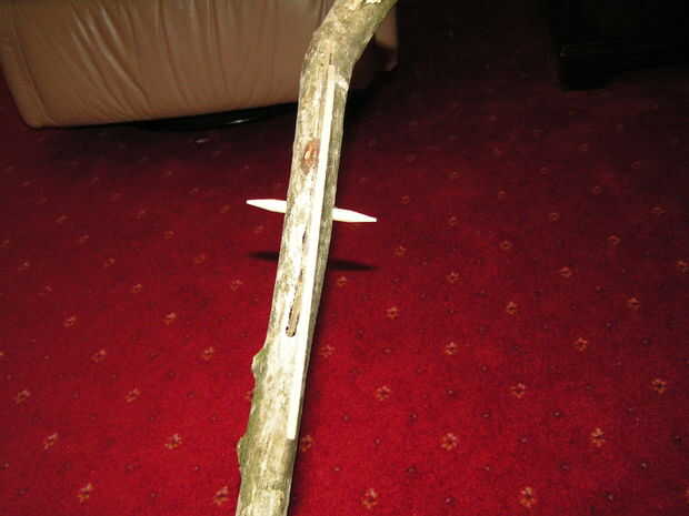 Como una ligera mejora a este diseño, podrias poner 2 clavijas a través de la cabeza de hacha para detenerlo bamboleo según lo sugerido por