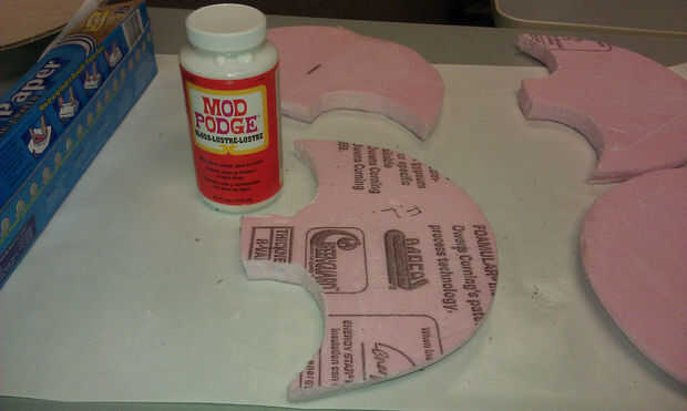 3. Antes de que la espuma se puede pegar a la madera contrachapada debe sellarse. Usando su cepillo de la espuma, aplicar mod podge al dorso de cada lámina y dejar secar