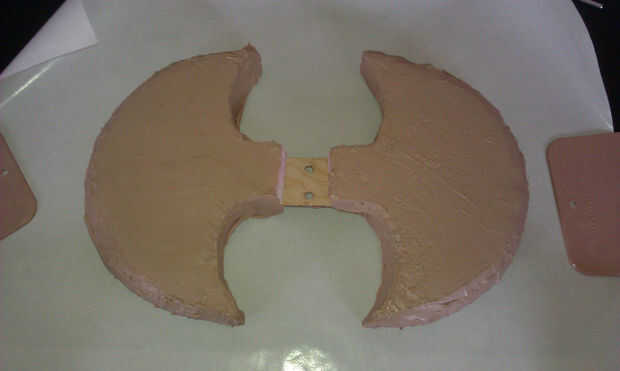 3. Hacer una capa fina de Bondo a cada lado, haciendo la parte plana de la hoja primero y luego los bordes curvos.