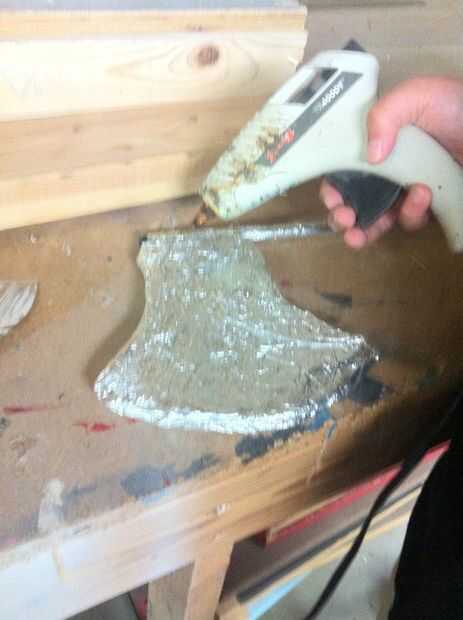 Utilice pegamento caliente para fijar la cabeza del hacha en el eje del club. Puede que necesite varias veces para asegurarse de que no caiga el pegamento.