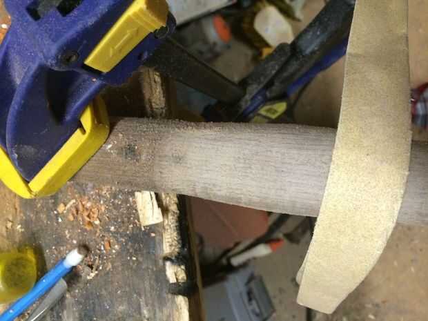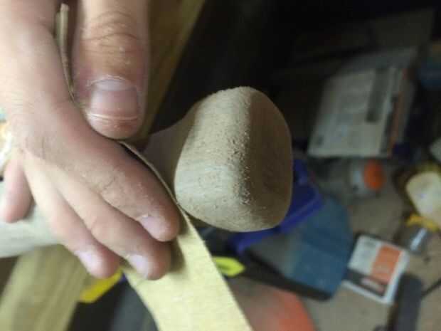 Usé papel de lija 150 para sacar marcas archivo y para suavizar cualquier asperezas en el mango. Presté especial atención a los dos puntos principales de que mi mano en su mayoría se agarre.