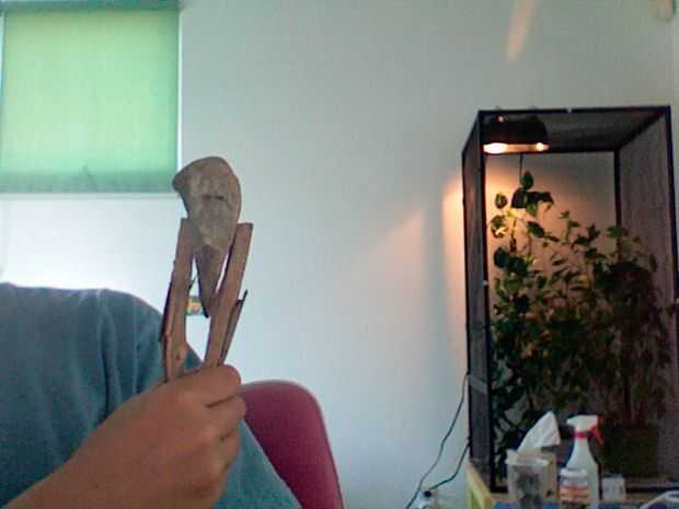 en este paso, lo que quieres hacer se divide la madera, no todo el camino, sino sobre el medio. Usted puede hacer esta forma que desee. usé una roca fuerte y había golpeado abajo.