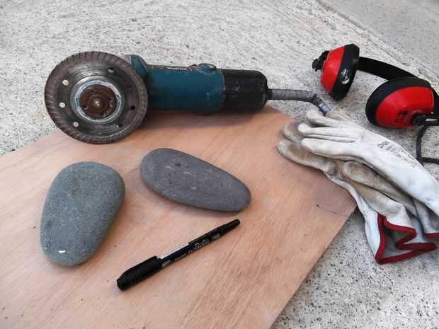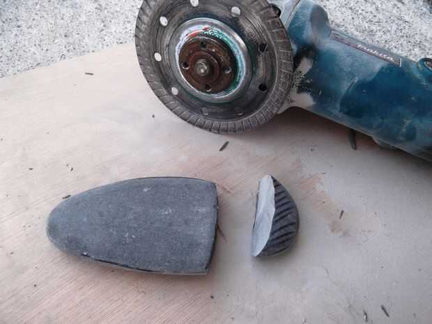 Amoladora angular de uso con un diamante del disco a rawcut los guijarros y un pesado disco de lija (la clase usada para arena hormigón, ladrillos, metal etc.) para hacer la rawsanding. Tenga cuidado de las manos porque el disco no hace diferencia entre guijarros y carne, utilizar guantes y gafas protectoras!