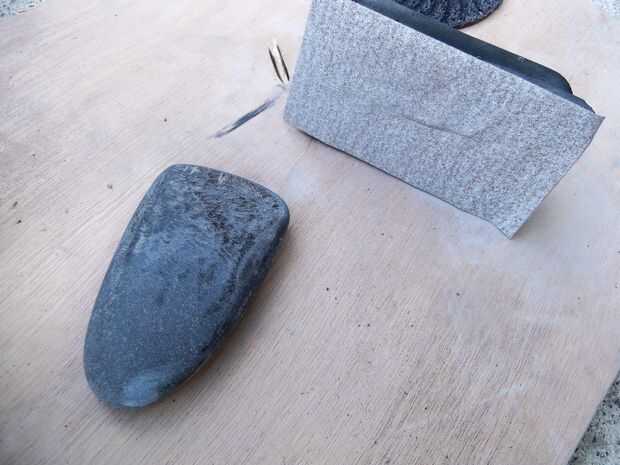 Estúpidamente perdí las fotos del proceso de conformación del celta granito pero hay algunas cosas de otro celt - mucho más pequeño y oscuro, tal vez de basalto.