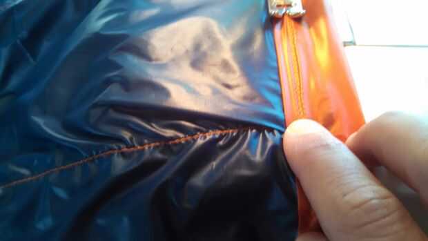 2. para la parte inferior, usted necesitará plisado de la cáscara externa (azul en mi caso) a medida que avanza. Esto es porque las cámaras de exterior son más anchos que la cáscara interna (la "corte diferencial" de antes).