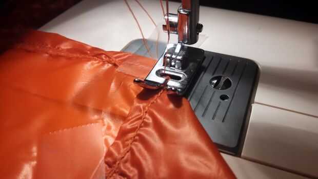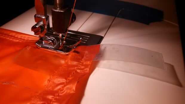 -Para las cáscaras internas y externas, plegar el borde inacabado acerca de. 25"(hacia el mismo lado con su cinta de bafle - el lado brillante) y coser un dobladillo doblado simple.