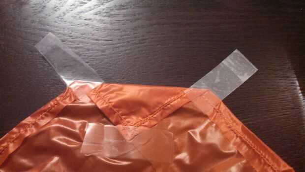 -En sólo la cáscara interna (orange en mi caso), plegar las esquinas otra pulgada y coser en su lugar. Esto le dará los bordes acabados agradables a los canales de elástico que en los cuatro lados crearás más adelante.
