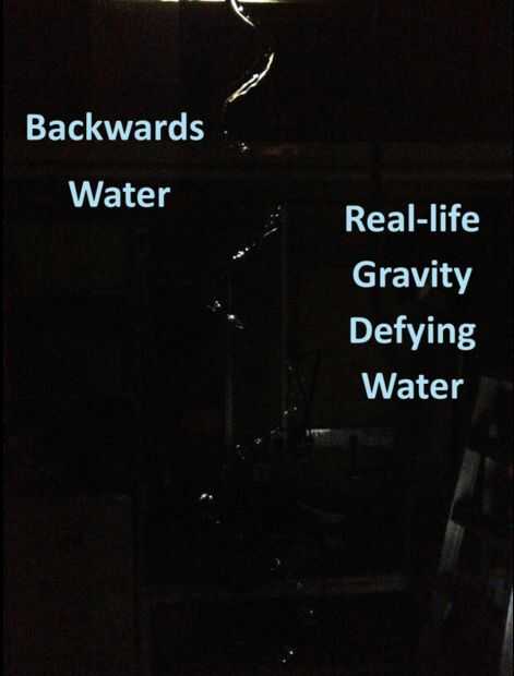 Este truco funciona mediante la combinación de luz y sonido. Una onda sinusoidal de baja frecuencia es enviada a través del altavoz y hace la pipa sobre el altavoz vibrar. Cuando la frecuencia de la luz estroboscópica y el altavoz se combinan el agua parece dejar en el aire. Tomando la frecuencia de la bocina ligeramente mayor o ligeramente menor a la frecuencia de la luz estroboscópica o hace que el agua parezca está desacelerando (tomando más tiempo para llegar a la parte inferior) o va al revés (el agua parece es aspiración de la cubeta y copia de seguridad de la manguera).