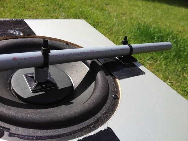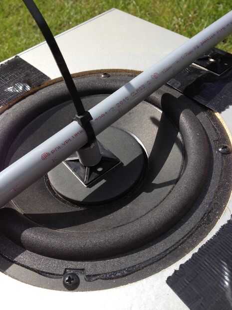 El soporte para atar cables superior actúa como un pivote a la tubería mientras se mueve con el cono del altavoz. El segundo portacable de corbata en el cono se asegura que el tubo se sostiene firmemente al cono como vibra.