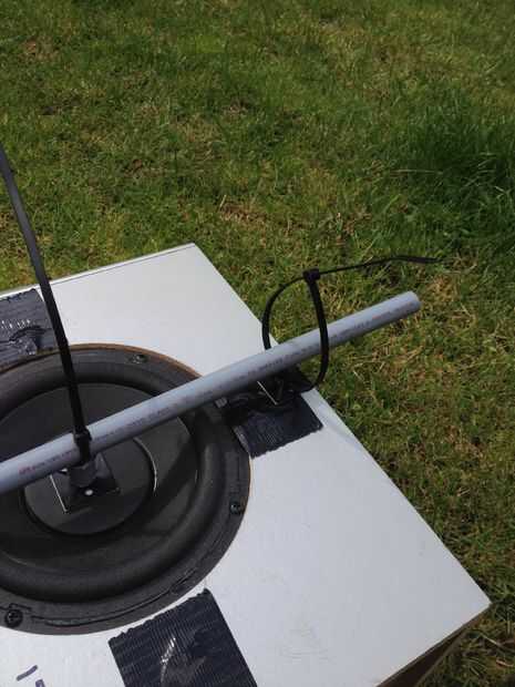 Descansar el tubo entre el cable tie que sobresalen de su espaciador asegurándose de que la tubería supera la base de los altavoces (como se muestra) y apriete alrededor del tubo.