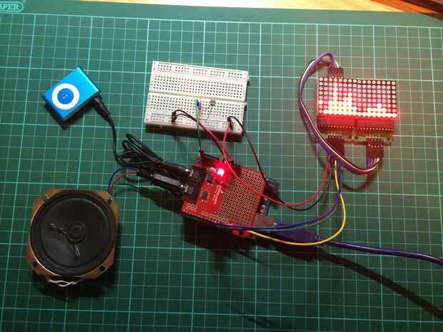 El circuito permite la visualización de canales de audio izquierdos y derecho. Siete de las columnas de cada pantalla de 8 x 8 representan una escala analógica de los siguientes componentes de frecuencia presentes en la ruta de señal de audio en cualquier transitorio en el tiempo.