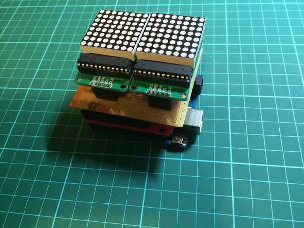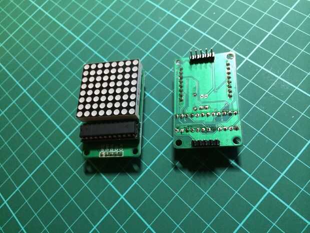 Finalmente he modificado los pasadores en las Matrices de LED 8 x 8 que eran perpendiculares a la placa de circuito y sería un empuje en las cabeceras 0,1" Brea en la veroboard.