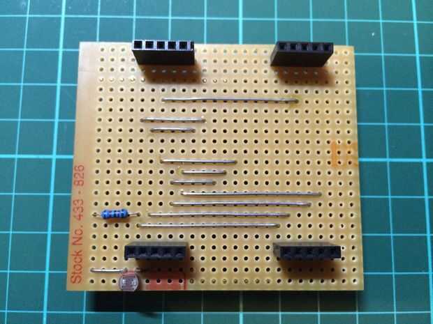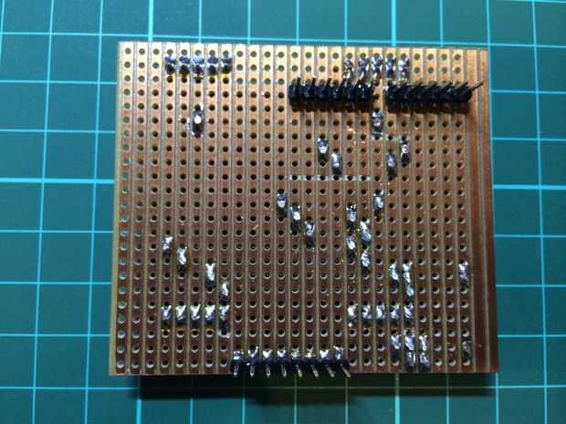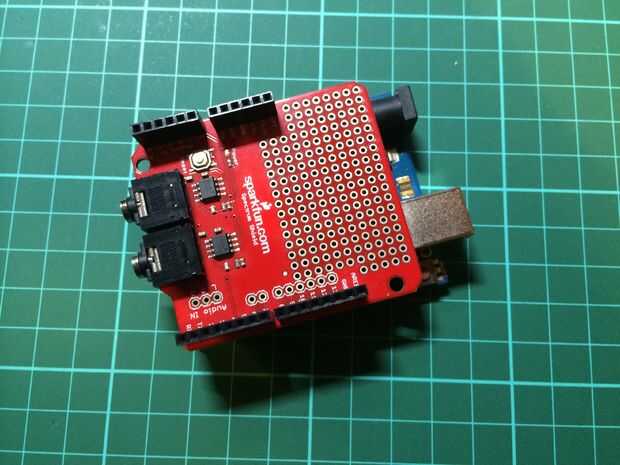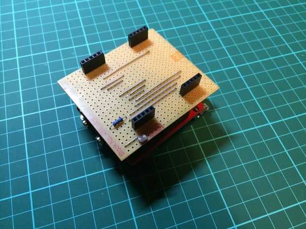 Ahora el software se me arreglado el circuito y comprometido con un diseño de veroboard equipadas cuidadosamente en la parte superior el par de Arduino Uno y escudo de espectro apilado.