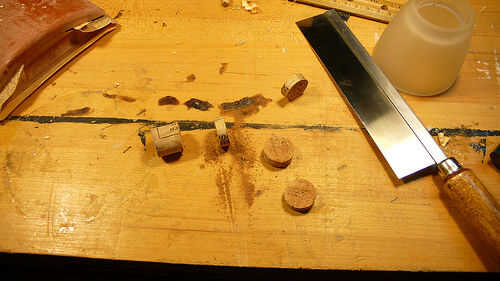 1) cortar un corcho de botella de vino secciones de 1/4"