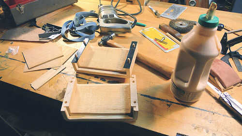 Ahora que estoy a un punto donde todo encaja sin problemas y no más trabajo de powertool se necesita (con suerte) su tiempo para embellecer el cuadro. Recogí algunos chapa del roble en venta un tiempo atrás en mi tienda local de Rockler. No necesariamente el lugar más barato para tienda pero definitivamente el lugar para ir para la calidad