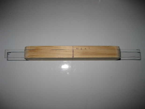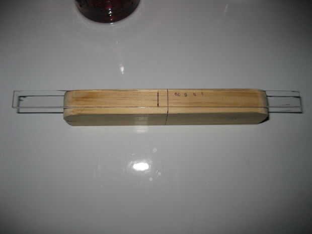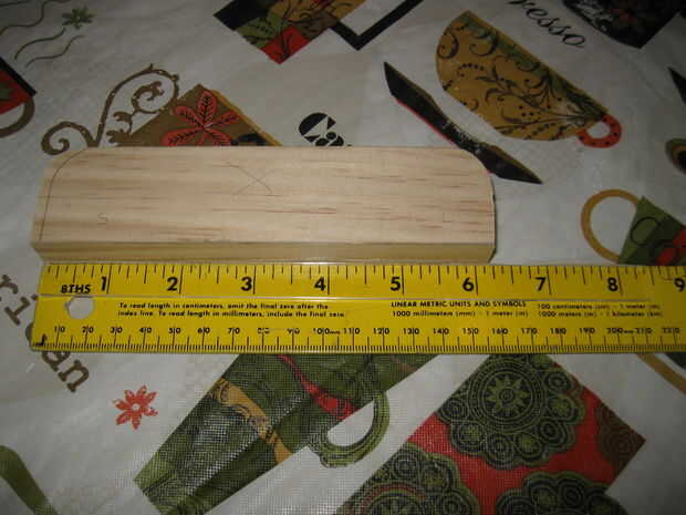 Así que ya tienes tu pieza de acrílico y una pieza en forma de madera. Use su regla para encontrar el punto central de cada pieza y trace una línea en la parte superior de cada uno. En la pieza de madera sugiero que trazar la línea en ambos lados y la parte superior.