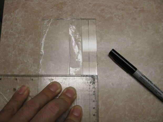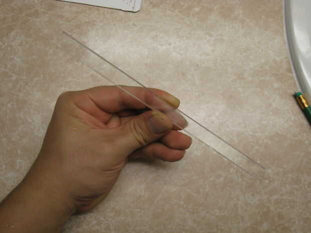 Utilizando tu regla y rotulador medir una pieza de cristal de plexi que es 1/2"(W) X 8 1/4" (L). Desea que esta pieza sea tan recto como sea posible así que le sugiere usando una herramienta de corte de plástico. No entraré en detalles sobre cómo utilizar esta herramienta. Podrá encontrar fácilmente una guía en youtube. Cuando se corta la pieza, lijar los bordes cortados con su papel de lija de grano 220. Esta pieza se convertirá en su panel de soporte frontal curvo.