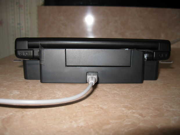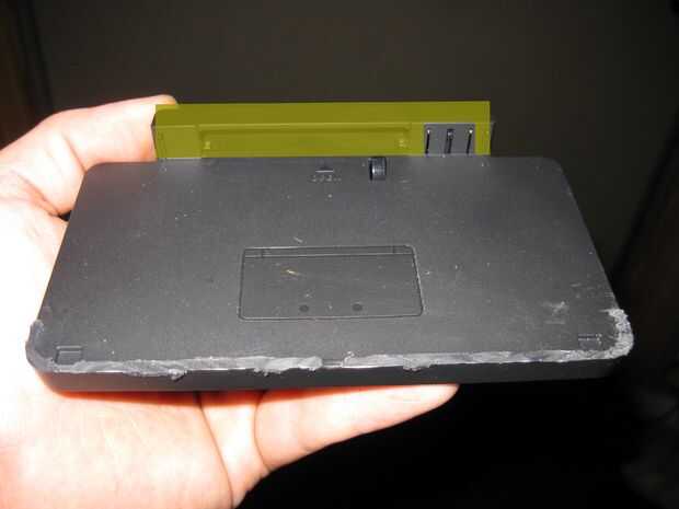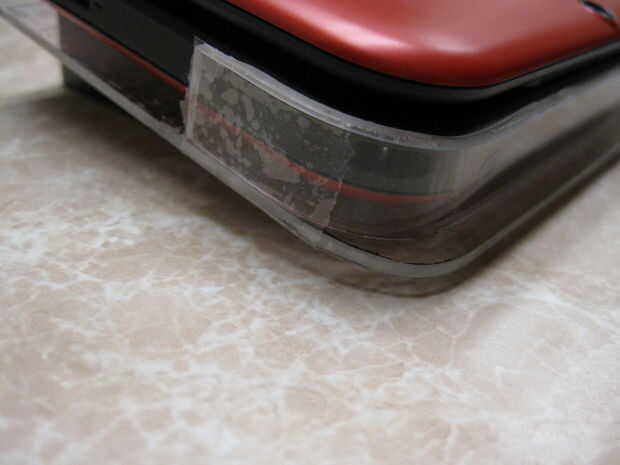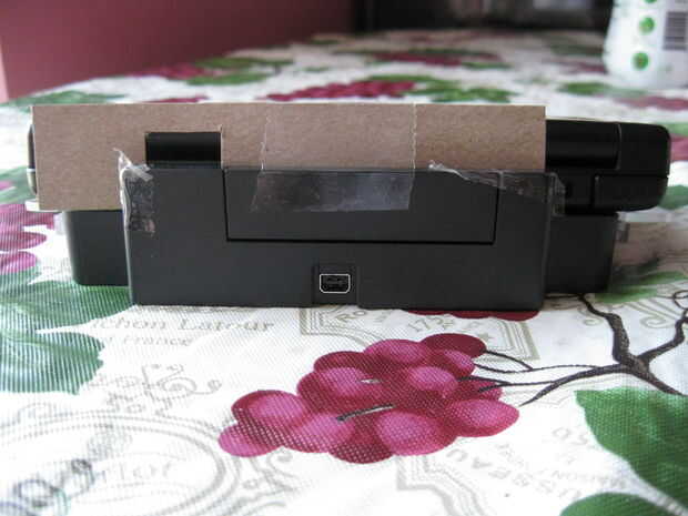 En este punto puede conectar el cargador al muelle para verificar que todo funciona correctamente. Mientras tu lo saque el XL el muelle de carga y ponerlo en. Si tu feliz con el mobiliario, entonces usted puede proceder al siguiente paso. Si usted encuentra que el mobiliario es un poco demasiado apretado puede crear a un espaciador entre el XL y el muelle. Corte un pedazo de cartón en la forma que se muestra y vuelva a ajustar la pieza curvada.