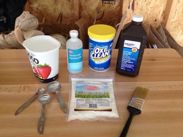 Vierta 473ML peróxido de hidrógeno en un recipiente que va a hacer en este.