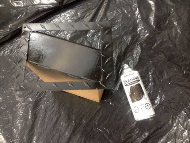 Me presentó los bordes del corte aluminio lisa de las rebabas y luego pintar toda la superficie de metal con una pintura negra de aerosol recubierto de goma.