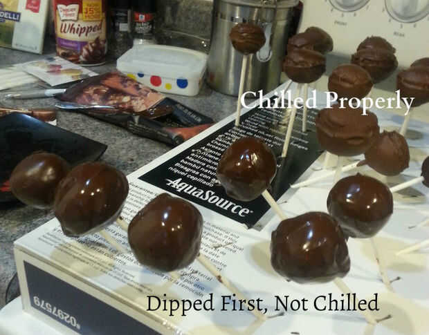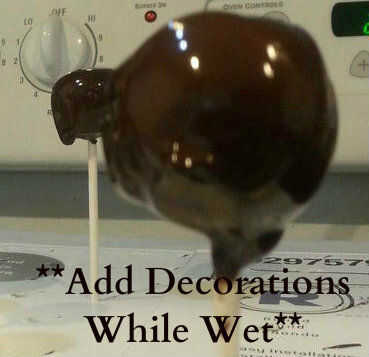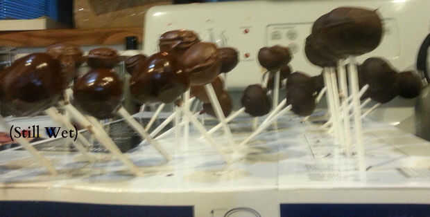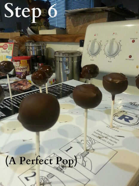 4. sumerja pop totalmente en chocolate. Levantar y agitar para remover la capa de exceso.