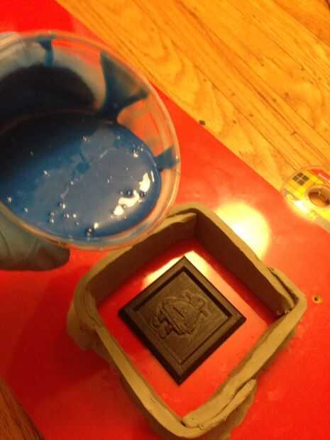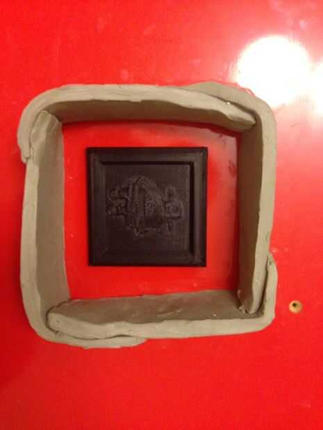 Una vez que se limpia la parte de plástico. Pegar sobre una superficie lisa. Usé cinta de doble cara aquí. luego hacer la pared con plastilina. Asegúrese de poner arcilla extra en la parte inferior y sellar correctamente las diferencias entre la superficie y la arcilla, incluso silicona es muy grueso cuando derramó fue fuga alguna si no está sellado.