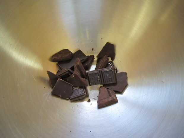 barra de Chocolate oscuro 4 parte: 1 parte chispas de chocolate dulce semi