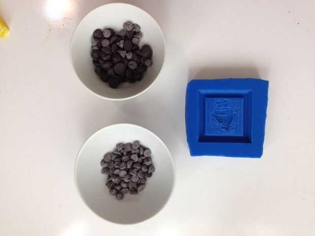 Tomar el recipiente fuera del fuego una vez que el chocolate llega a 110 f el. añadimos los trocitos de chocolate dulce 1 parte semi. Revuelva y deje que se derrita lentamente. la temperatura debe ser baja y el chocolate debe tener un brillo brillante semi. Utilice una espátula para llenar el molde. Shake shake para liberar algunos bolsa de aire.