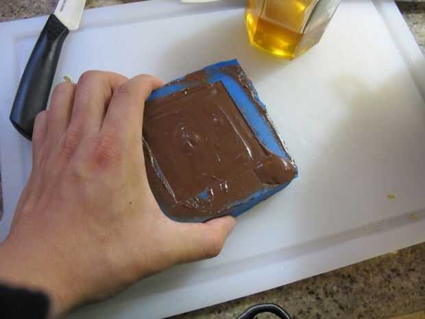 Añadir agua en una cacerola déjalo cocer a fuego lento, luego poner un recipiente encima de la cacerola y colocar chocolate oscuro en el tazón de fuente. una vez que el recipiente se calienta gradualmente Inicio revolver el chocolate hasta que todo derretido. pero asegúrese de que la temperatura no debe ir por encima de 110 f el. de lo contrario se convertirá en una textura granosa como mojar la arena.
