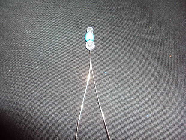Sobre ambos cables de añadir un gran grano claro, un grano de pony azul y seguir que hasta con 3 pequeñas clara granos.