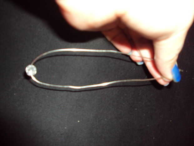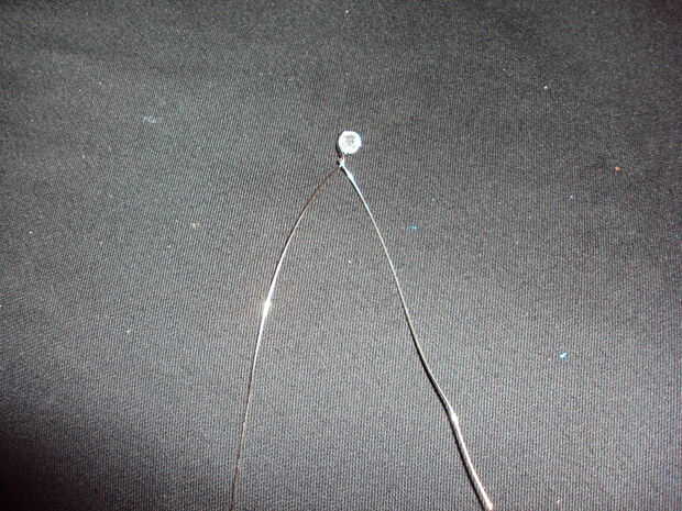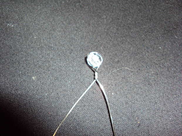 Primero agregue un grano claro grande en el medio del alambre 10 1/2 pulgadas (imagen uno). Enrosque el cable alrededor del talón por lo menos dos veces (cuadro tres).