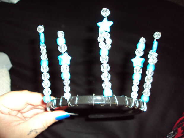 Repita con las cuatro piezas restantes. (Alternan grande, pequeño, grande, pequeño, grande para esta tiara... para la tiara amarilla, tenía un pico en el centro).