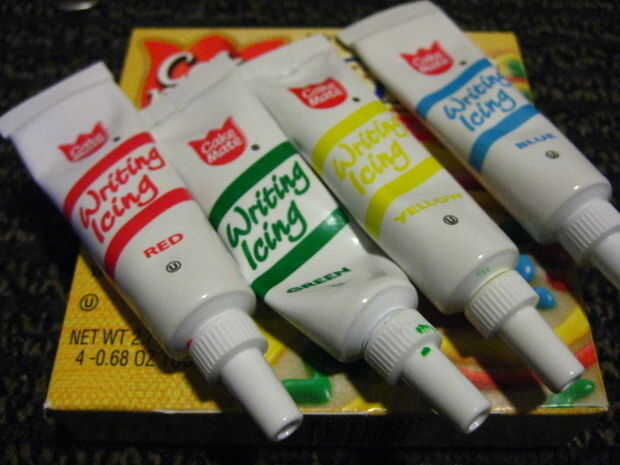 Cogí un kit de pastel glaseado, pero puedes hacer tu propio glaseado también. (Si usted está buscando para salvar un par de dólares, sugeriría optar por guinda hecha de antemano.)