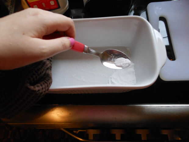 Tomo sobre una cucharadita llena de la bi-carbohidratos en polvo y repartidos en la parte inferior de mi recipiente adecuado para horno y precalentar el horno a unos 100C, que es aproximadamente de 200F. Una vez caliente, horneo este polvo para aproximadamente una hora. El calor convierte en carbonato de sodio. Bastante fácil ¿EH? :)