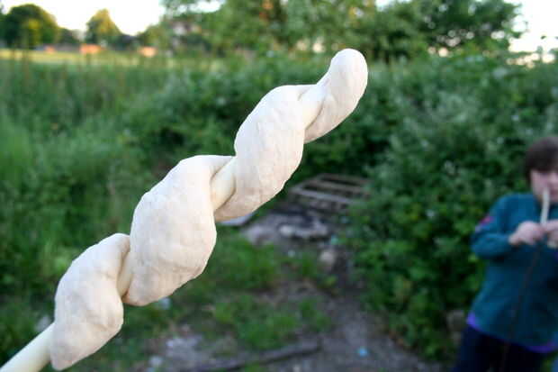Rodillo en forma de serpiente. No sea tentado a hacer realmente grueso - que desee acerca de 1/4"- 1/2" de espesor y 'twist' en el palo.