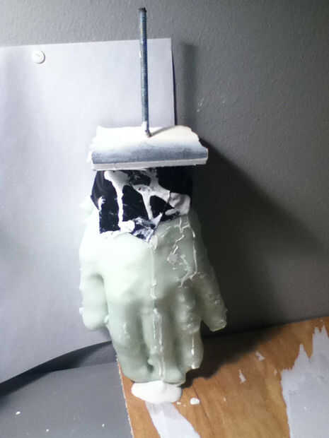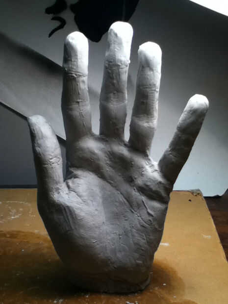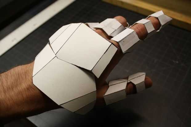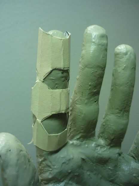 No es totalmente necesario, pero pensé que sería útil crear un maniquí para burlarse de un prototipo de papel del guante. La manera más rápida, más barata y sencilla que he encontrado para hacer un molde de yeso rápido es esto llamado "flex cera". Derretir en una olla, sumergir la mano un par de veces y poof! Molde de manos instantáneo. Yo este molde en yeso de París.