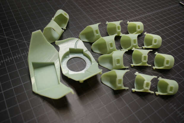 Los componentes impresos en 3D incluyen dos "placas" para la parte posterior de la mano - estos casa del circuito de teléfono celular y batería - y los segmentos del dedo - estas casa los botones para marcar el teléfono así como el teléfono micrófono y el altavoz. Porque no tengo acceso a una impresora 3D de alta resolución, subcontrata estos componentes. Hay varias compañías que ofrecen impresiones 3D únicas personalizadas, como Autodesk 123D, Shapeways, Ponoko. Porque un amigo se lo recomendó, fui con Ponoko. Opté por la opción "Extrafina Durable plástico". Éstos fueron impresos en una Objet Connex 3D-impresora, utilizando un material ABS-como propietario que se cura con láseres UV. Ponoko fue un placer trabajar con e incluso me ofreció consejos para mejorar mis diseños para trabajar mejor en sus procesos de impresión.