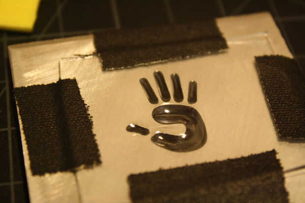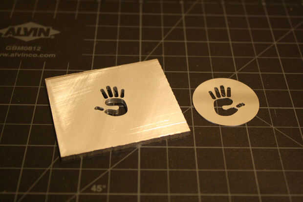 El último componente para fabricar era retroiluminada "logo de la mano" para la parte posterior de la placa de la mano. Había ya LEDs en el circuito del teléfono, así que quería utilizar para hacer un logo de un guante iluminado, al igual que el logotipo de apple en un ordenador macbook.