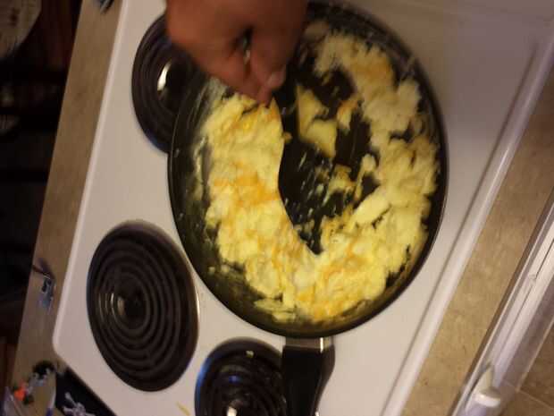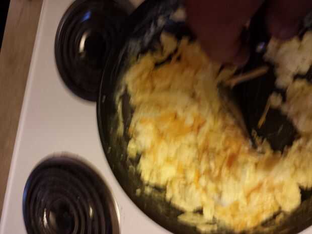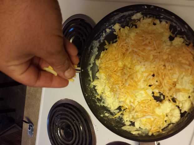 Haciendo huevos revueltos queso (5 / 7 paso)
